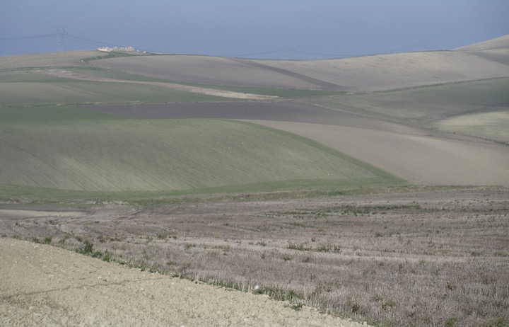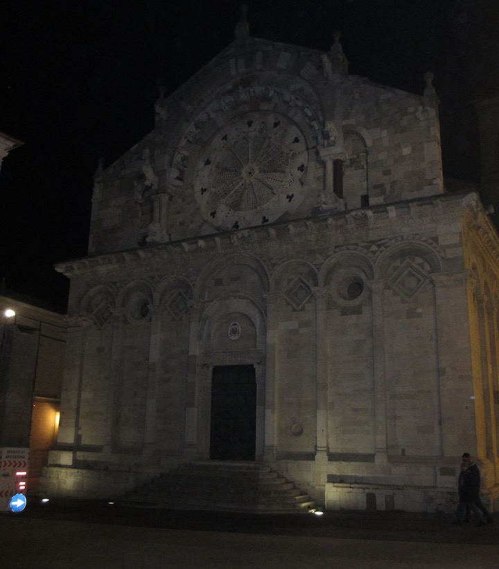 After walking back up the hill from Celle and turning left on the SP126 Troia is soon visible in the distance. This is a long descent along the road into Troia, which is much larger than it appears from a distance. The climb up to the city center is rewarded with a large shaded park. The cathedral in Troia has a fascinating rose window made of stone. Legend has it that Troia was founded by the Greeks after they had destroyed the ancient Troy.