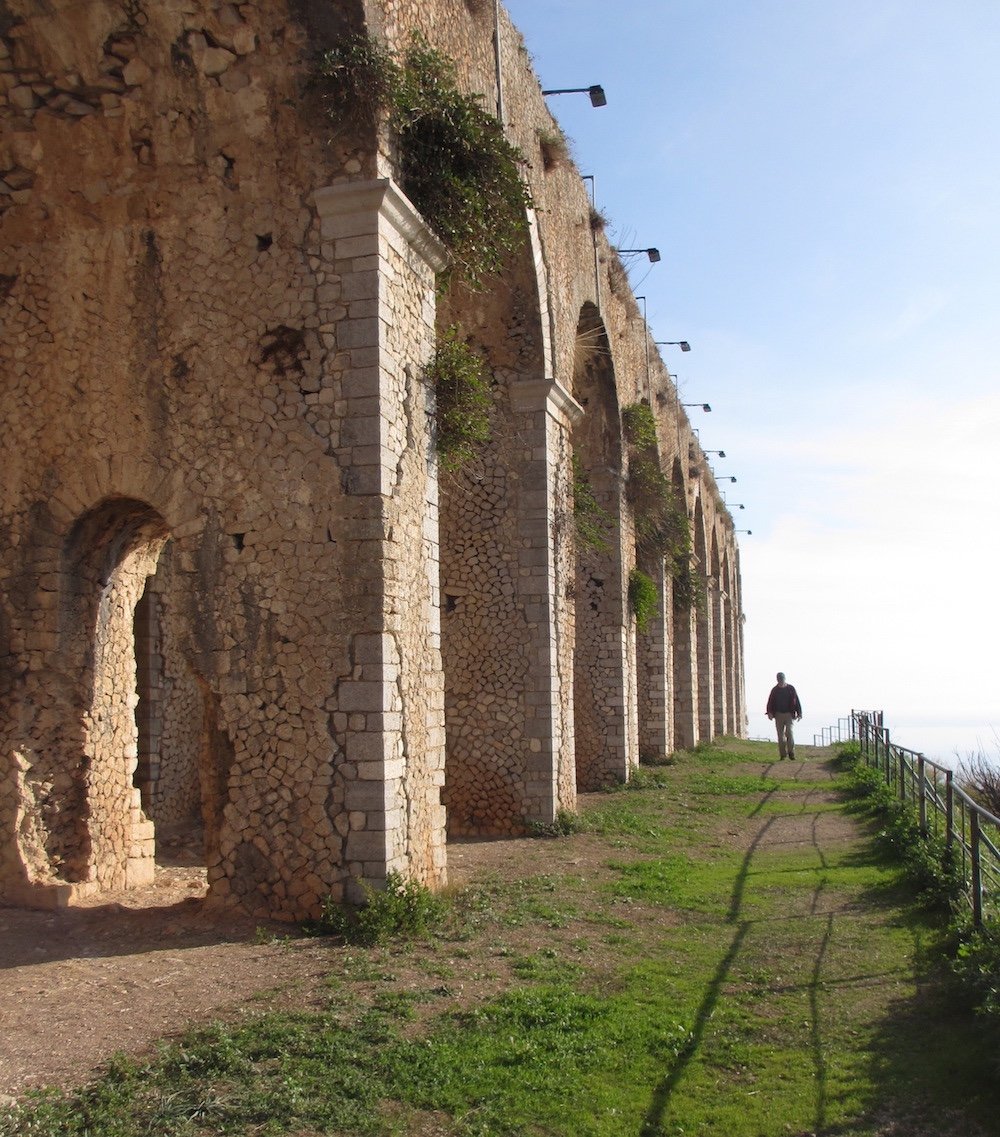 From Terracina the path leada up the hill on Via Anxur and the Strada Panoramica. For a wonderful side trip to the Temple of Jove, there is a path which starts from where the Strada Panoramica makes a sharp left turn. This path winds up the hill to the temple, offering great views of the city, the sea, and the temple grounds. After your visit, the Via Panoramico leads back down the hill to the Via Cimitero, where it meets the path.